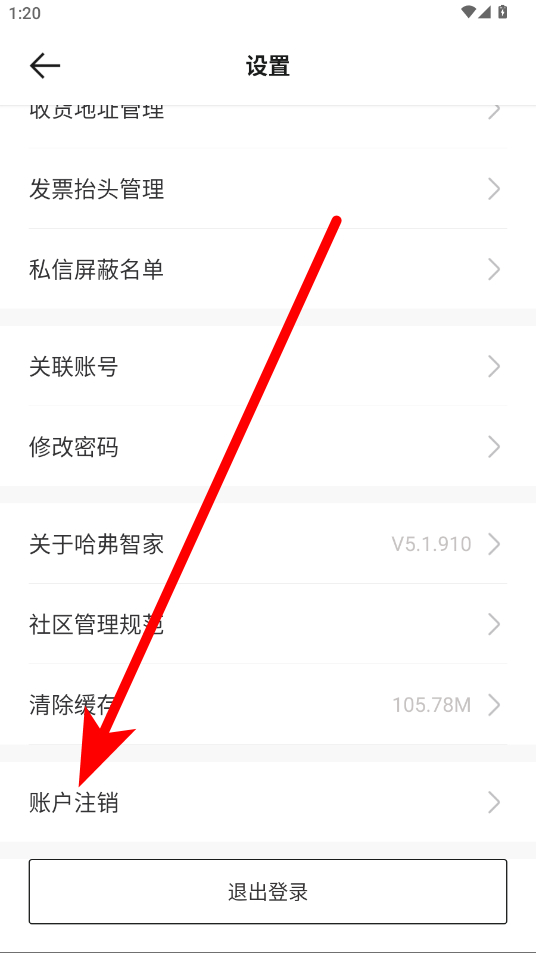 3、在设置页面中,向下滑动找到账户注销选项并点击进入。