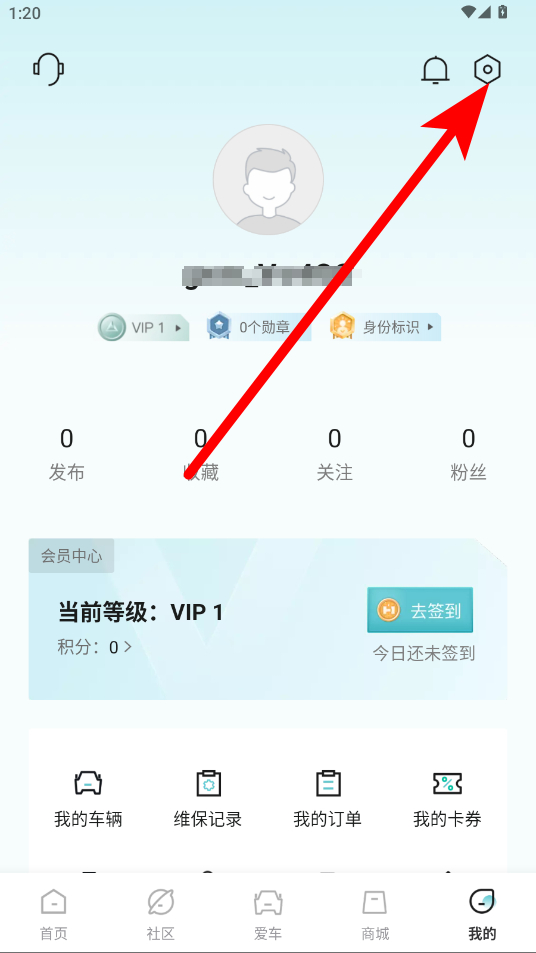 2、在个人界面右上角,点击设置图标,进入设置页面。