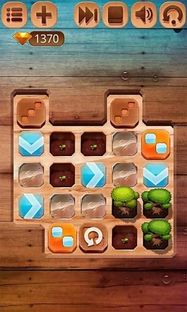 冰块物理特性的利用不仅仅局限于移动,在后期的关卡中还加入了一些特殊的道具方块,比如火焰方块,将其划动至冰块上方会将其融化;又或者在棋盘中布局一些种子,当冰块嵌入对应凹槽时会化成液体让种子成长为一颗小树,可见游戏不仅仅专注于考验玩家的智商,一些有趣的小互动和自然常理的融入让游戏看起来更有活力。