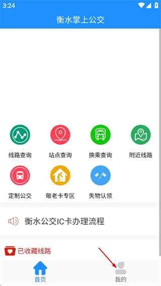 1、打开衡水掌上公交软件,点击右下角“我的”按钮,进入个人界面。