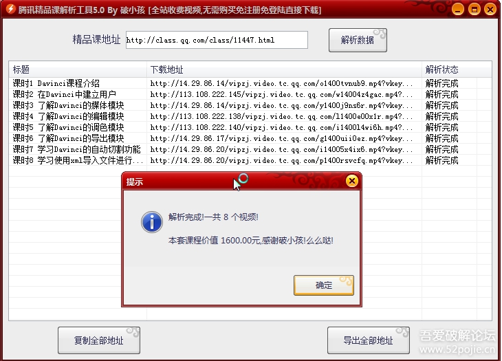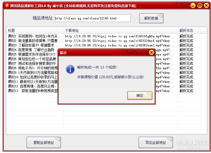 腾讯精品课解析修改工具是一款强大的解析工具,你可以在这里轻松的下载精品课的各类食品和学习资源,而不需要担心产生任何的资费,轻松的进行批量解析,将自己所需要的课程下载到自己的电脑内。