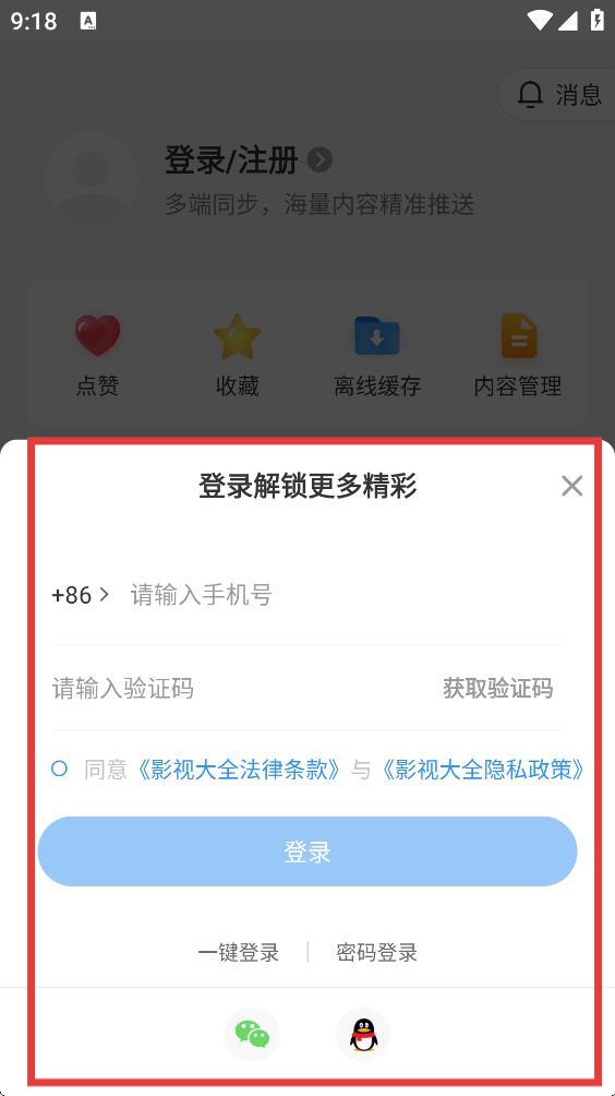 3、根据所选登录方式完成验证,即可成功登录影视大全。