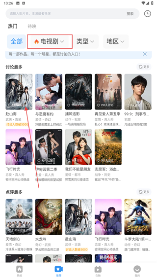 2、进入热门推荐的界面内,在该标签下点击要播放的电视剧。