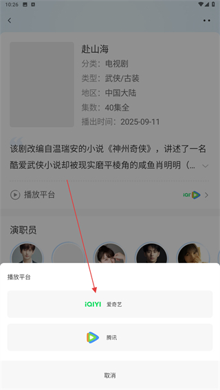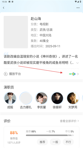 3、进入该电视剧的详情页面内,点击播放平台的功能按钮。