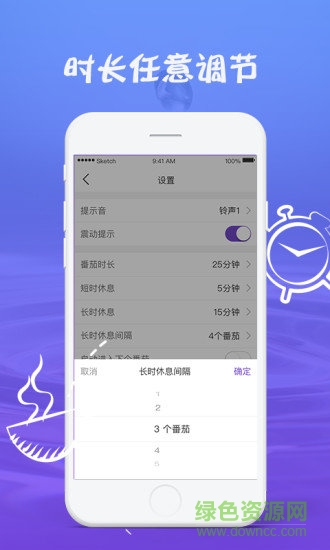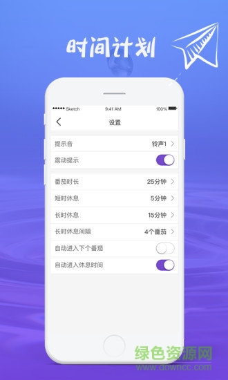 紫色番茄钟app是一款能帮你矫正作息时间表的工具型软件,只要自己设置正常的时间,软件到时就会智能提醒你,如果每日都按正常的作息时间进行工作和休息,日后还会为你赠送一些小奖励哦,非常的实用又方便,有需要的朋友就来绿色资源网下载使用吧!