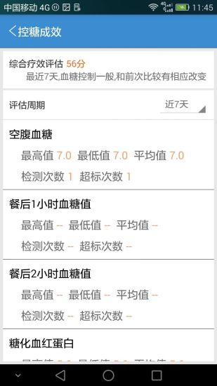 糖无忌考察用户血糖检测结果的动态变化,定期为用户生成糖尿病控制综合疗效评估,并支持不同时间段的控糖成效对比,为用户提供控糖成效的量化评估。