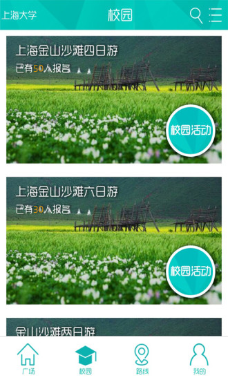 3、定位城市,选择自己所在的学校,查看附近的旅游路线,可以提交订单购买;