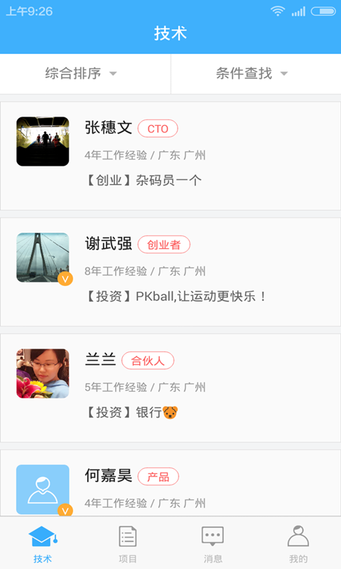 即时通信功能为创业者和技术人员搭建了交流平台,让你轻松与他人沟通互动,更懂彼此。