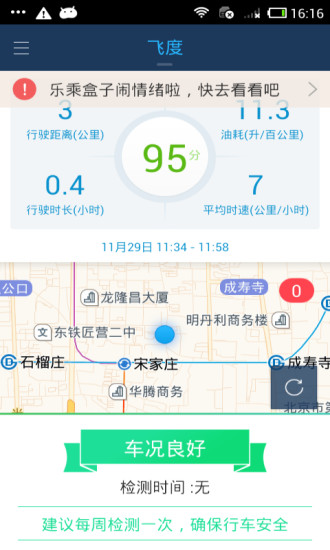 乐乘盒子app帮助用户轻松获得车辆监控、移位报警、震动报警、车辆定位、车况查询、行车费用分析、车务提醒、行车轨迹、故障扫描、远程诊断、保养提醒等用车养车功能而成为了车主们行车过程中的智慧行车助手。有了乐乘app违章查询、养车闹钟、救援雷达、上门检测、车辆档案等一手掌握。