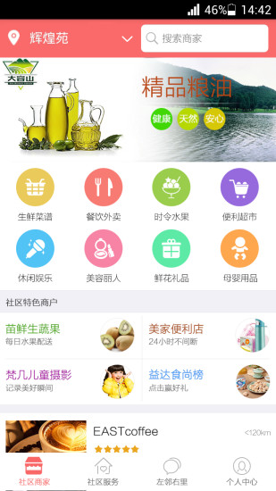 2.包含外卖、快递、生鲜、物业、家政、论坛、维修、家政等服务