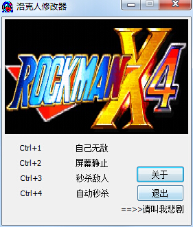 洛克人x4修改器是专为游戏《洛克人X4》打造的修改工具,提供自己无敌、屏幕静止、秒杀敌人、自动秒杀四项功能,无敌加秒杀有点BT,玩家还是少用比较好,否则就太没意思了。