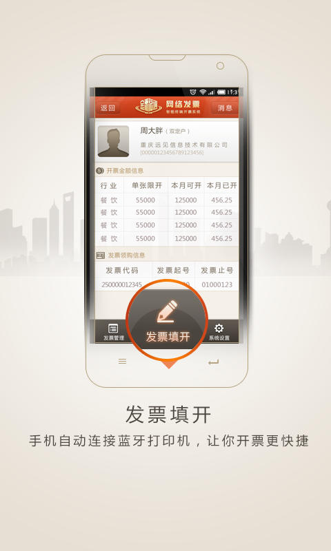 金税通网络发票app是一款通过蓝牙连接打印设备打印电子发表的手机软件,能够直接使用手机进行手机发票的填开、补打、作废,非常方便好使的一款软件,欢迎需要的朋友来下载体验吧!