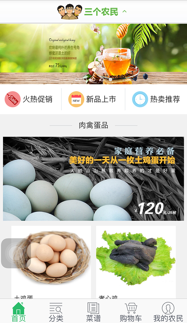 三个农民app是一款农产品购物类手机软件,这里汇集了肉禽蛋品、名品茶叶、粮油副食、保健滋补、生态干货等商品,绿色环保,轻轻一点即可送货上门,将健康绿色食品带回家,喜爱的朋友赶快下载体验吧!