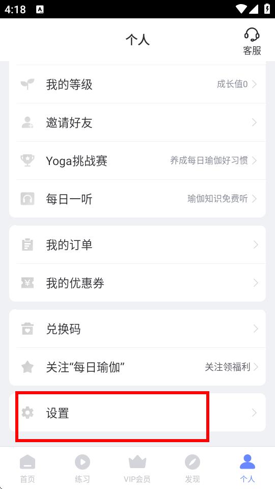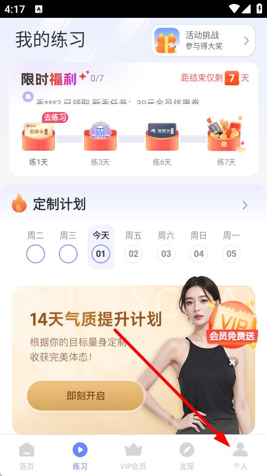 1、打开每日瑜伽应用,在底部导航栏点击个人图标进入个人页面。