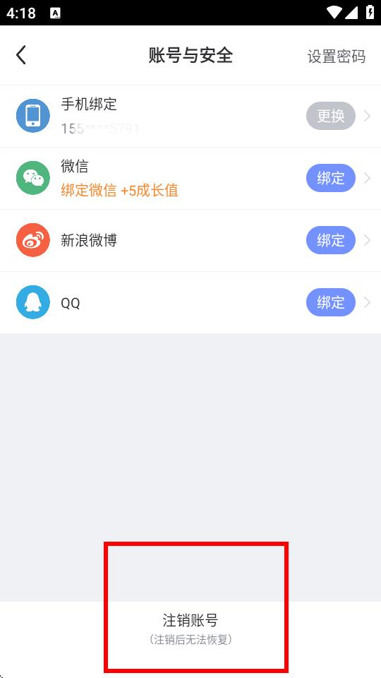 4、在账号与安全页面底部找到注销账号选项,点击后按提示操作完成注销。请留意注销后账号无法恢复。