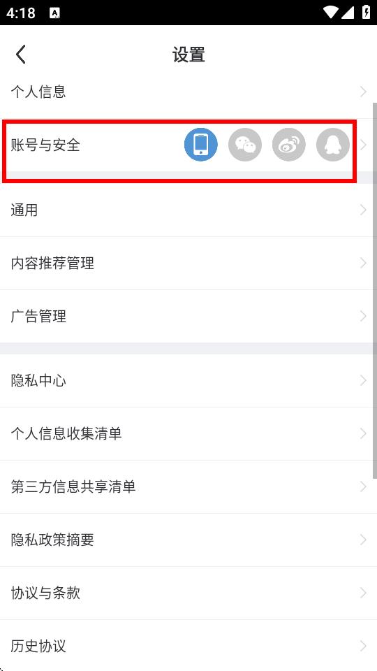 3、在设置界面里,点击账号与安全进入账号与安全页面。