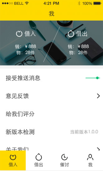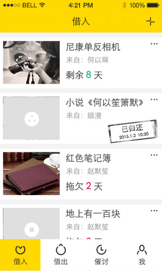 3.记录你借入和借出的钱和物,到期自动提醒,避免尴尬。