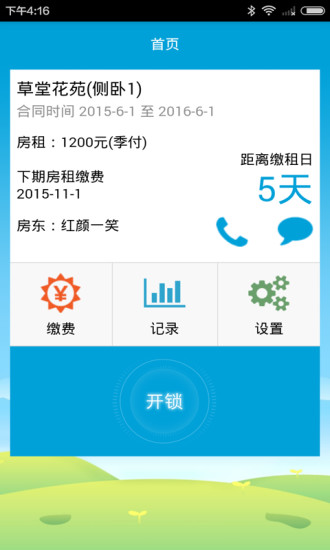 这是一款使用手机蓝牙开门的开锁软件,租房人员可以直接通过软件向房东缴费,缴费成功后并向房东申请蓝牙门锁密码,当房东授权后,租客就能设置新的门锁密码然后通过蓝牙开锁进门,只要打开蓝牙,你就能实现无距离开门。