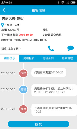 这是一款使用手机蓝牙开门的开锁软件,租房人员可以直接通过软件向房东缴费,缴费成功后并向房东申请蓝牙门锁密码,当房东授权后,租客就能设置新的门锁密码然后通过蓝牙开锁进门,只要打开蓝牙,你就能实现无距离开门。