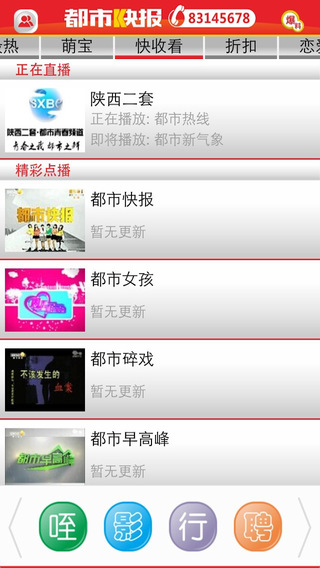 《都市快报》手机APP(客户端)是陕西广播电视台二套重点打造的手机移动平台,是《都市快报》这一陕西名牌电视栏目的新媒体延伸。客户端共设置“快报讯”“快报帮”“快报圈”三大板块,在为客户提供最快、最全、最忒的新闻资讯的同时,还对本地服务生活内容例如“美食、交通、团购、打折、电影”进行整合发布,满足用户全方位需要。我们的定位是:陕西第一移动门户!