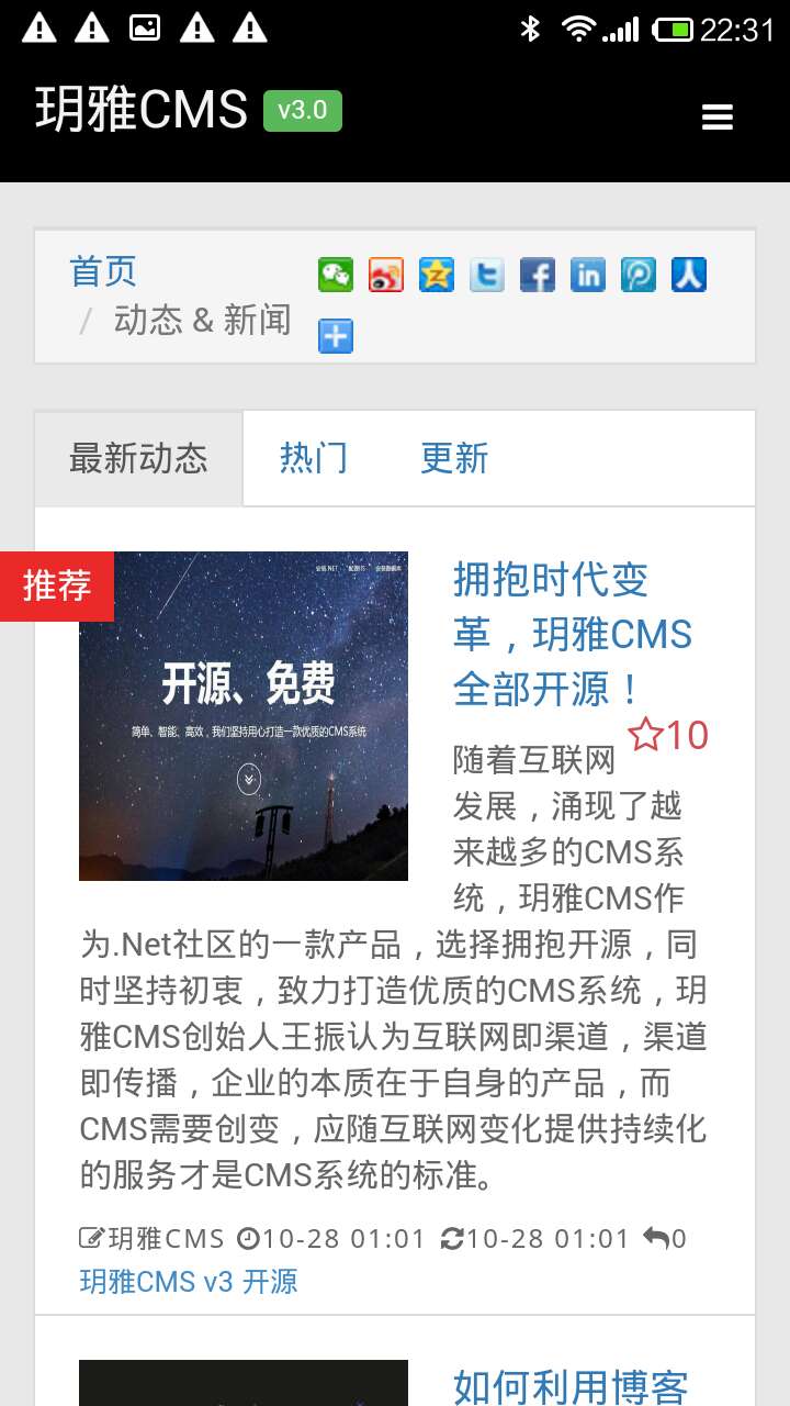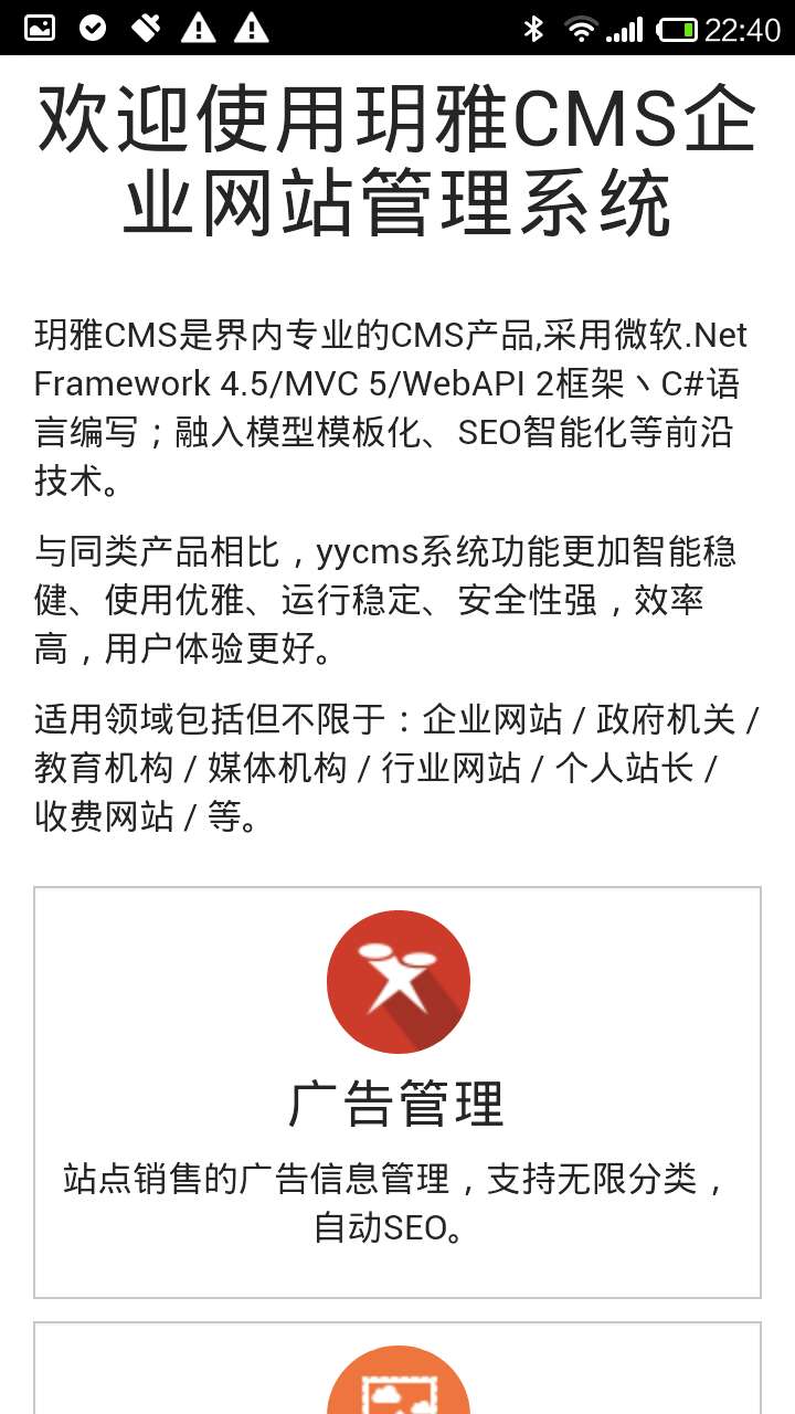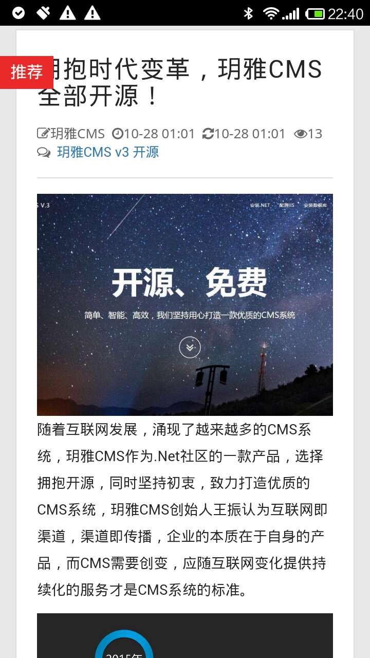 玥雅CMS是一款.Net社区的开源内容管理系统,并融入了更多新的功能,该APP是对网页版的一个封装