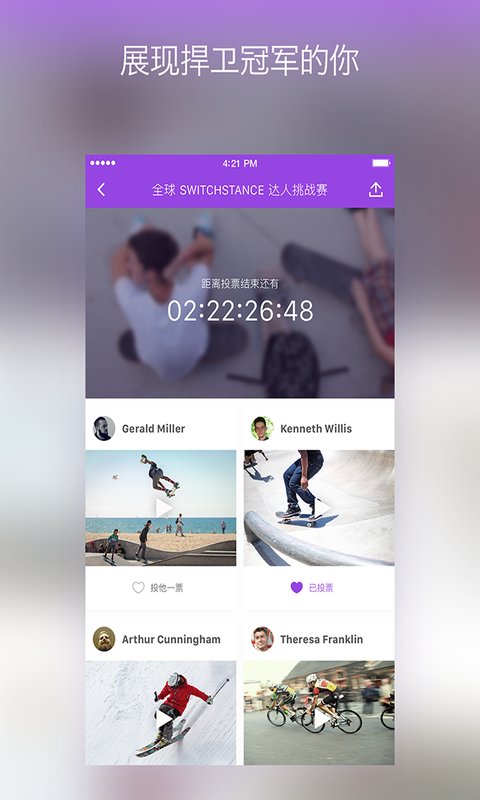 微视频PK,录制自己的运动视频,可以向他人发起挑战。让更多人被你的运动绝技而惊呆,和更多运动达人切磋成长!