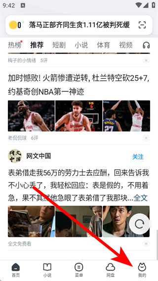 1、打开UC浏览器应用,点击页面底部的我的选项。