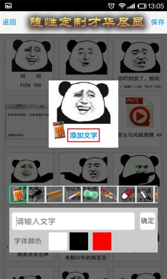 3.搜集了大量最热门的表情素材(包括金馆长系列),用户可以在图片上自定义文字和有趣的小装饰。