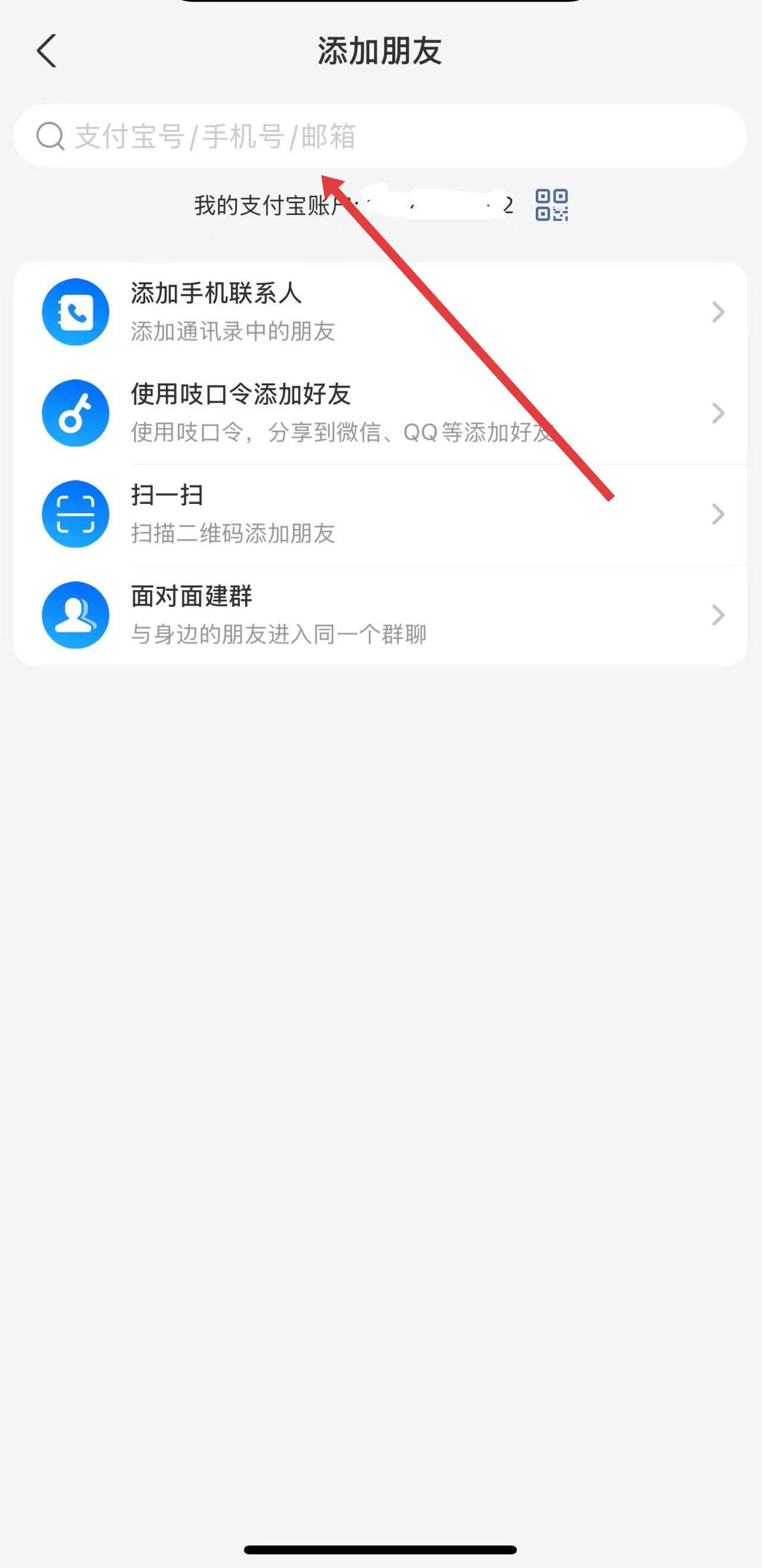 4、在添加朋友界面,可以通过输入支付宝号、手机号、邮箱,或选择添加手机联系人、使用吱口令、扫码等方式添加好友。