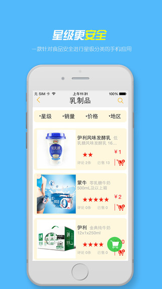 2、星级更安全,一款针对食品安全进行星级分类的手机应用