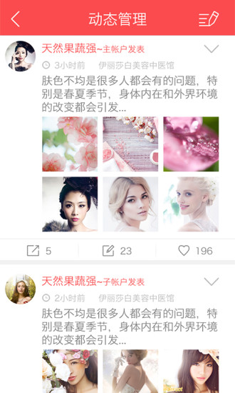 6、动态管理:推广新项目,展现会员活动精彩瞬间,让更多人了解你的美容院和优质服务,促进用户互动,吸引客户到店。