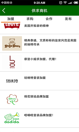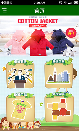 国际童装app是一个大型童装商城,国际童装app包含童装资讯、全国企业、童装产品和供求商机等,为用户提供最最优质的童装,最优惠的价格和最优质的服务,同时还能加盟求购、发布供求,还有服装行业招聘,下载国际童装app,买最好的童装吧!