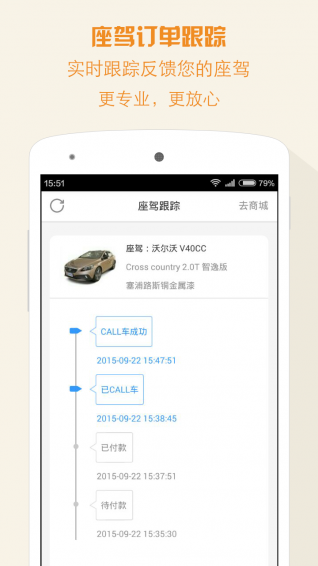 2、座驾订单跟踪:实时跟踪反馈您的座驾、更专业、更放心