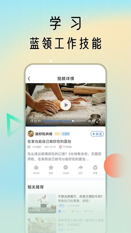 一个专为蓝领打造的内容社区和视频平台,帮助所有蓝领积极生活、学习成长,在这里,记录真实有趣的生活,分享、学习专业技能。