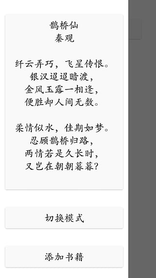 诗颜app是一个能让你专心读一本书的阅读器,诗经,吉檀迦利,飞鸟集,园丁集,新月集。下载诗颜app,在文字中探寻那些美丽的故事吧。