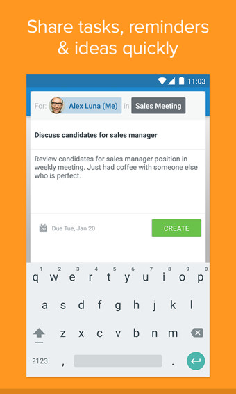 为你自己或团成员快速创建任务。增加目的任务、提醒以及请求。