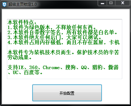 超级主页锁定工具为你打造一款专业的浏览器主页锁定工具软件,使用该工具可以快速设置你的电脑浏览器主页,再也不用担心被恶意篡改影响你的使用体验了,支持现在常见的多种浏览器,使用方便,小巧实用,欢迎下载!