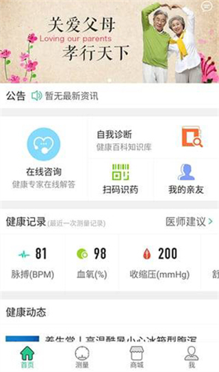 健行天下APP是南京云商天下信息技术有限公司推出的适合18岁以上人群的一款智慧医疗应用软件。用户可以使用健行天下支持的智能电子医疗器械测量自己的血压的健康数据,形成个人电子健康档案。对于普通用户,也可以选择手动输入健康数据至健行天下平台,得到针对性的健康建议。