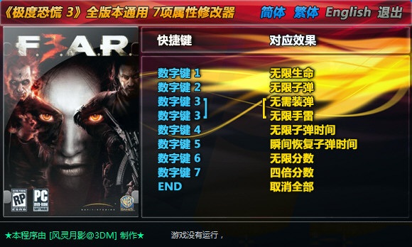 极度恐慌3修改器风灵月影是由玩家风灵月影专为游戏《极度恐慌3》制作的修改工具。修改器全版本通用,提供无限分数、无限子弹、无限生命等功能,可以为玩家带来不一样的游戏体验!