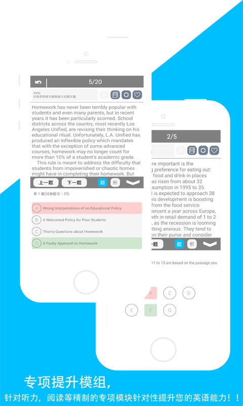 针对听力、阅读等专项版块,精心定制专项提升模组,助您针对性提升英语能力