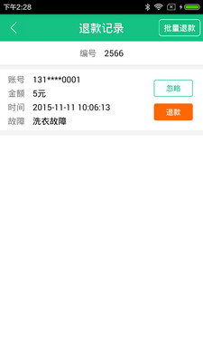 浣熊维护是浣熊洗衣的维护版本,能够及时的处理洗衣过程中出现的故障,并且根据特定情况进行退款处理,如果把故障洗衣机修好了,进行状态恢复。
