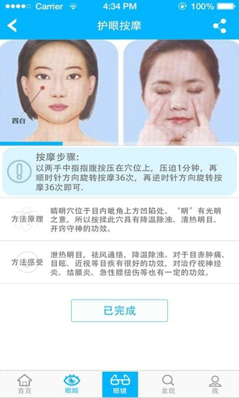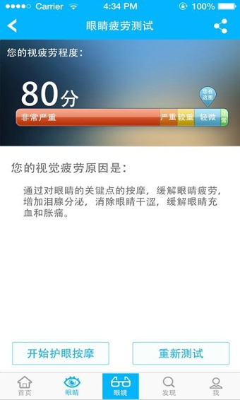 3.可以通过疲劳度测试,根据测试结果建模提供专业的护眼按摩指引,意在帮助年轻人改善视疲劳,更好的呵护自己的眼睛。