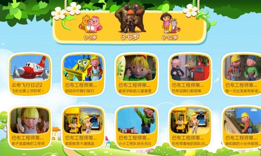 3-6岁宝宝,推荐精品益智内容,包括《巴布工程师》系列、《兔小贝儿歌》、《猫和老鼠》等经典动画。