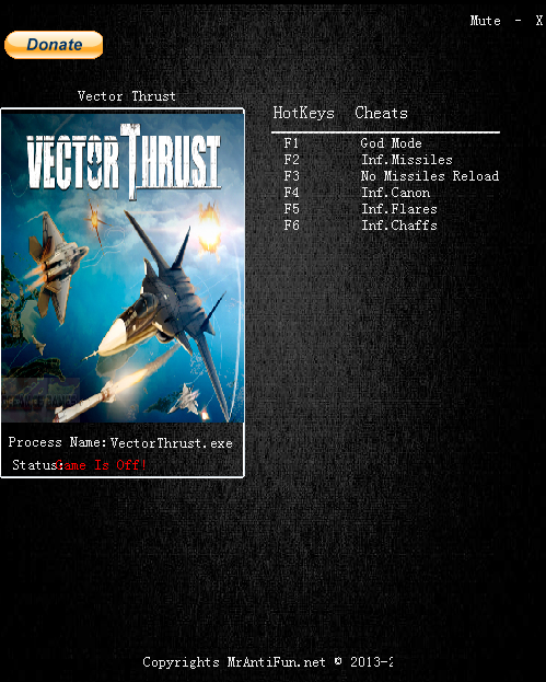 矢量推力五项修改器是针对该游戏制作的一款含无限道安、无限加农炮等共无项属性修改工具,下附详细使用说明,操作简单易用,轻松修改游戏,获得极致游戏体验,欢迎下载,祝你游戏愉快!