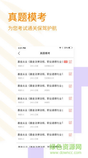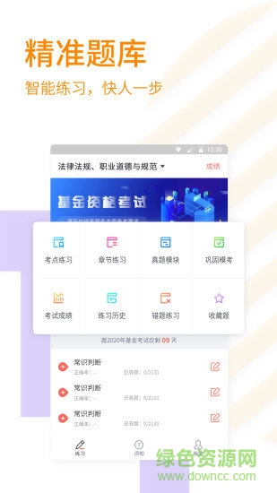 万学基金考试题库app是为想要参加此类学科考试朋友们提供的一款手机学习软件,用户们可以自行选择所需要的学习课程,还能参与免费提供的真题模拟考试和专业的考试指南,让你能在不断的练习中找出自己学习不足的地方,有需要的朋友就来绿色资源网下载使用吧!