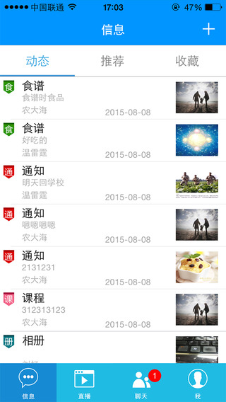 老师省心:老师可进行校园信息发布,如通知、相册、课程、食谱、作业等