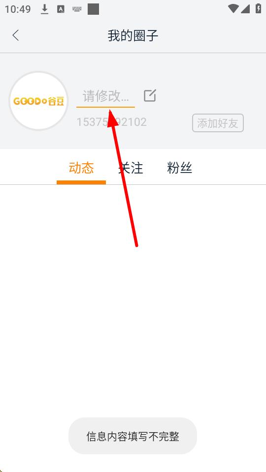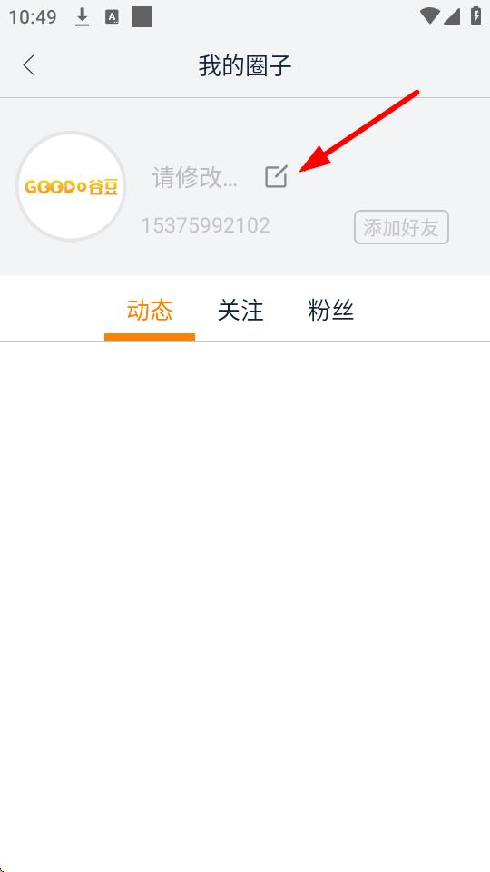3、在我的圈子页面,找到昵称旁的编辑图标并点击,进入昵称编辑状态。