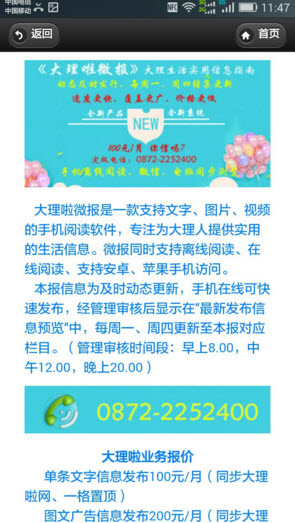 大理啦微报是一款支持文字、图片、视频的手机阅读软件,专注为大理人提供实用的生活信息。