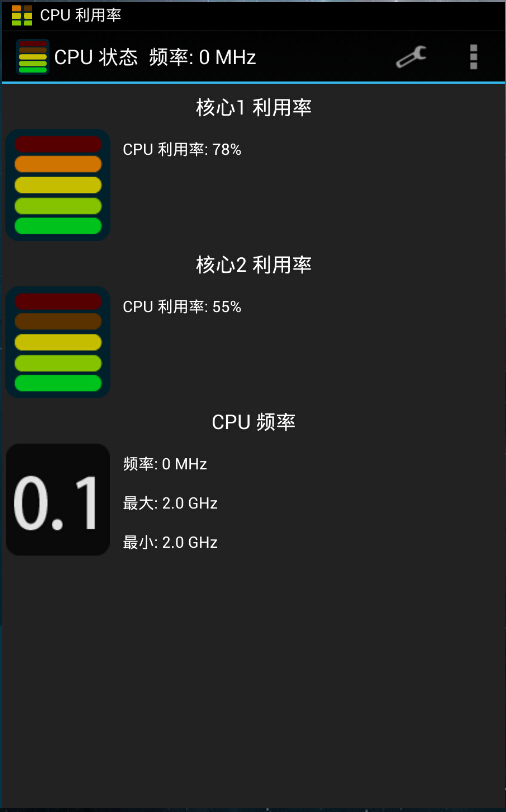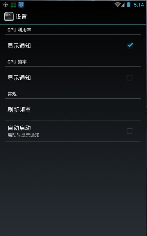 CPU状态查看器是一款监测CPU频率的软件,软件主要显示的是 CPU 的利用率,用百分比来表示,可在通知栏中显示,你可以随时查看情况,并且可以设置刷新频率。软件支持开机自动启动,在设置菜单里面打开或关闭,并且你可以设置利用率和频率是否单独在通知栏中显示。