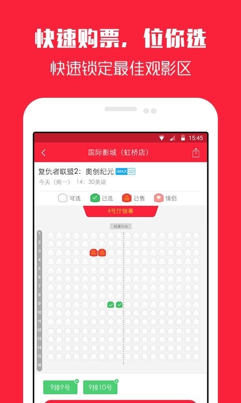全国200多个城市,提供超过2500家影院的实时放映时间表,随时随地轻松选座购票。并且可定位离自己最近的电影院,更高效快捷的选片购票。